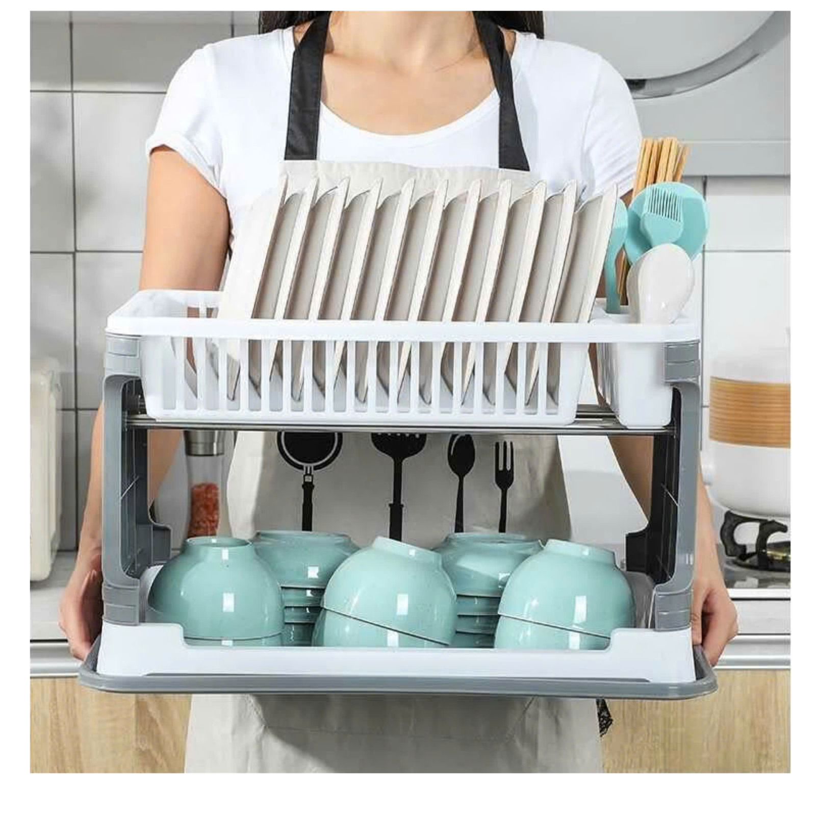 🍴 Functional Design: Dish drainer includes slots for dishes and plates, plus separate sections for kitchen cutlery items.