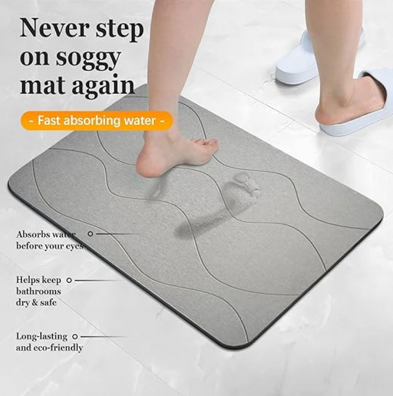 Crafted from soft microfiber, this mat absorbs water effectively—ideal for bathrooms or rainy days.