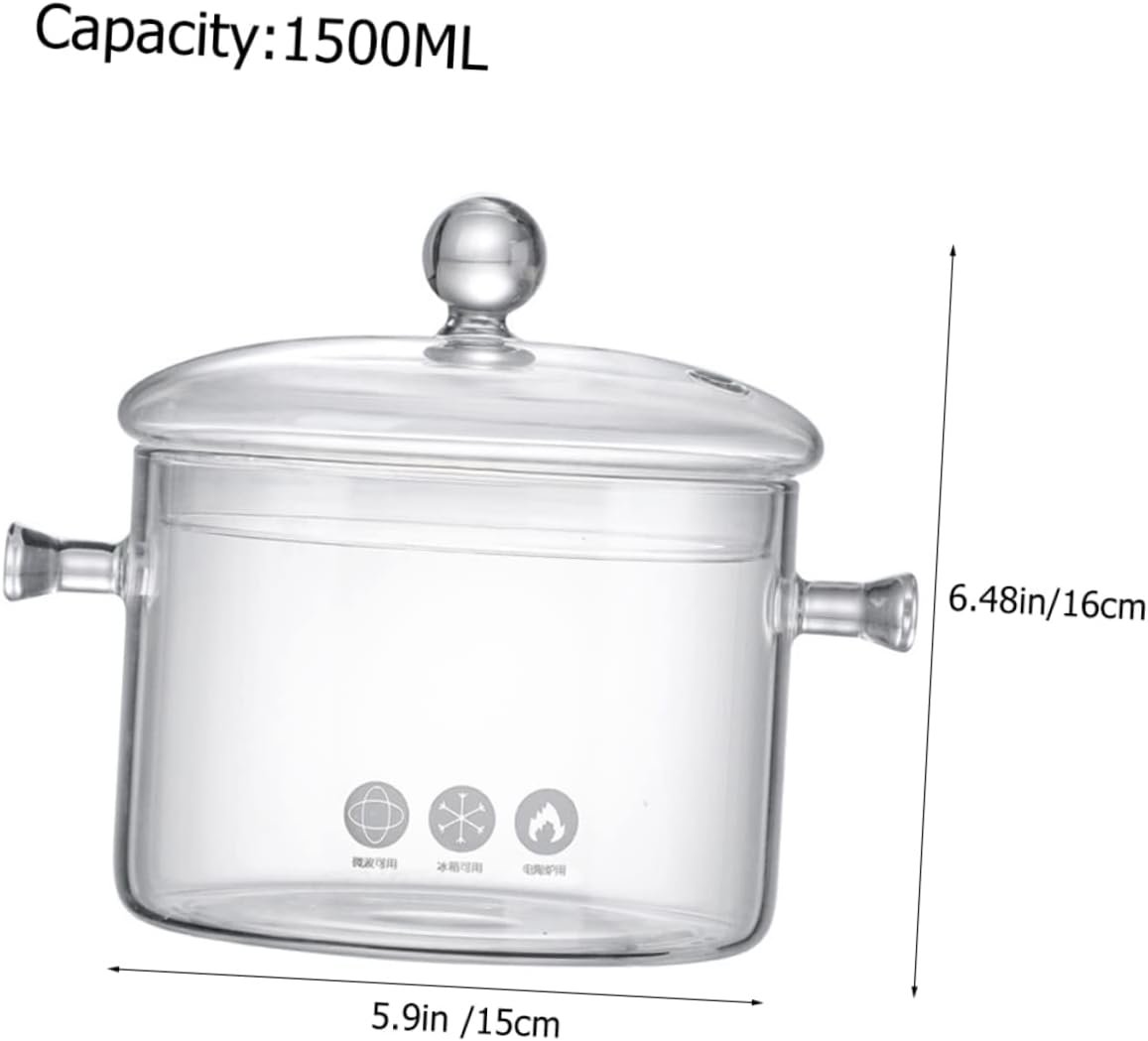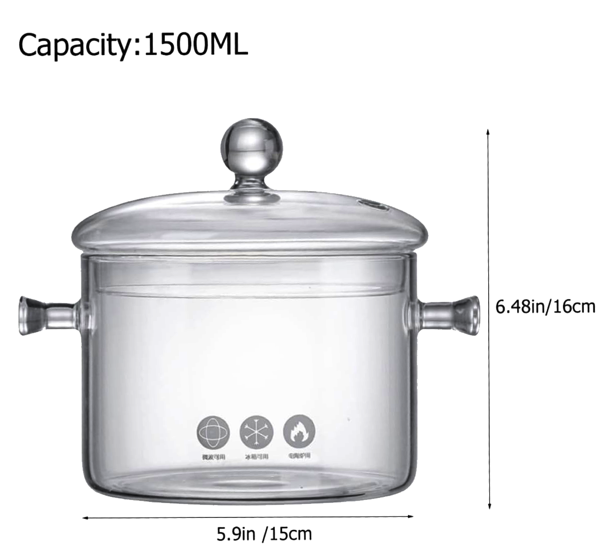 This glass simmer pot features a sturdy, smooth wooden handle and can be used on open flames, gas stoves, electric stoves, ovens, refrigerators, and microwaves. Safe and reliable for all your cooking needs. 🍳✅