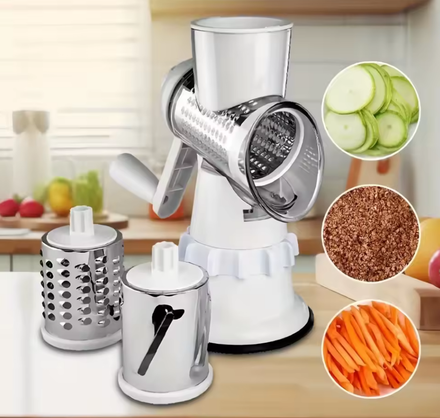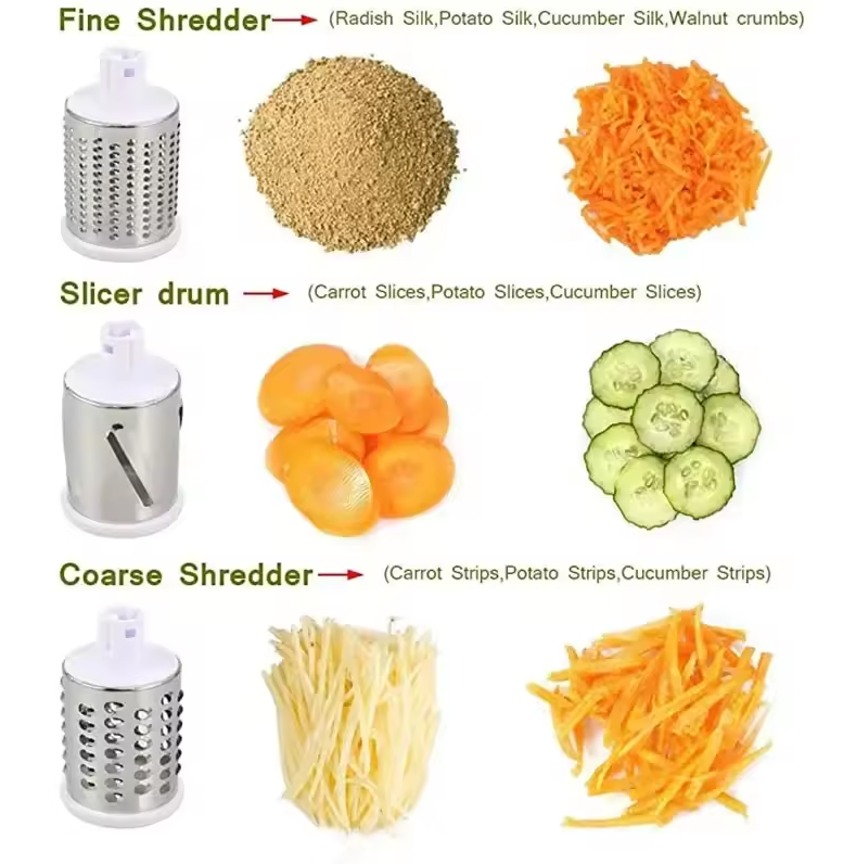 ๐ช 3-in-1 Stainless Steel Drums: Quickly grate, shred, or slice your favorite ingredients with ease.