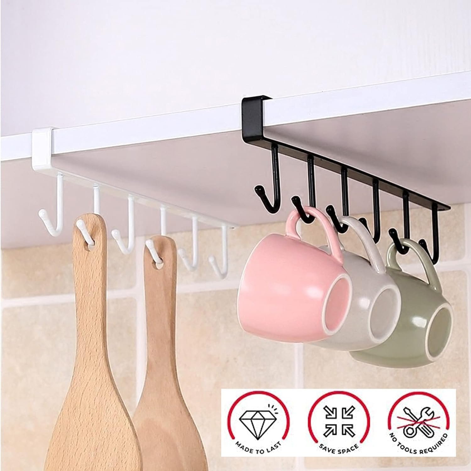No tools 🔧, drilling 🚫, or screws needed! These flexible, removable hooks simply hang over cabinet doors or shelves for quick and damage-free installation. 🏃♂️👌