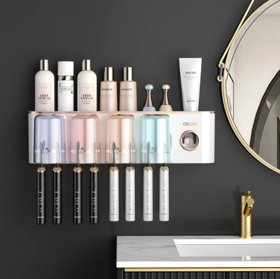 Our Multifunctional Toothbrush Holder helps streamline your routine. The built-in toothpaste dispenser reduces waste while dust-proof & waterproof cups keep your items clean and tidy πͺ₯β±οΈ.