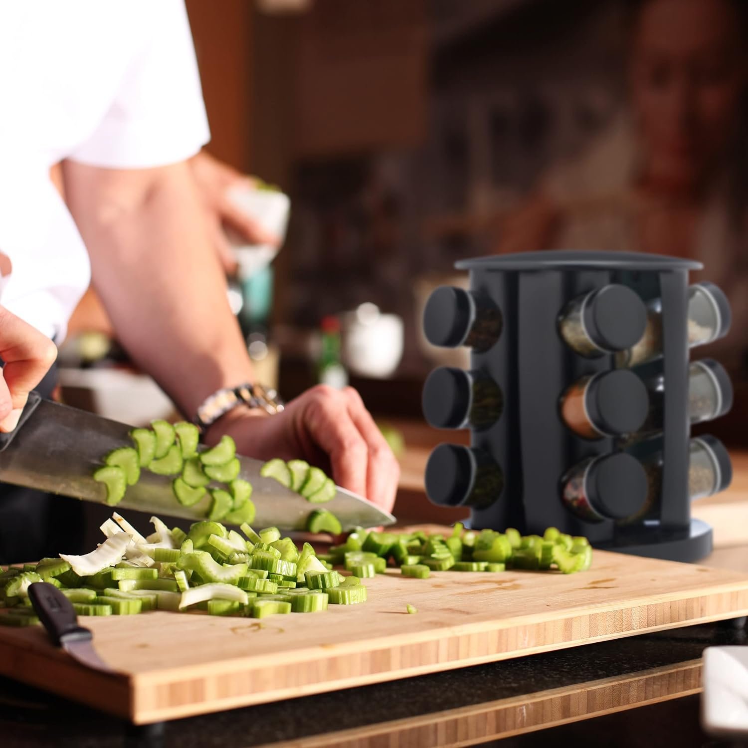 Spin it with ease! 🎯 Quickly access any spice with the smooth, 360° rotating base – super handy while cooking 🍳 or serving at the table 🍽️.
