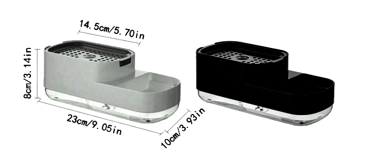 โœจ Easy Dishwashing: Simplifies washing dishes with a built-in soap dispenser and sponge holder.