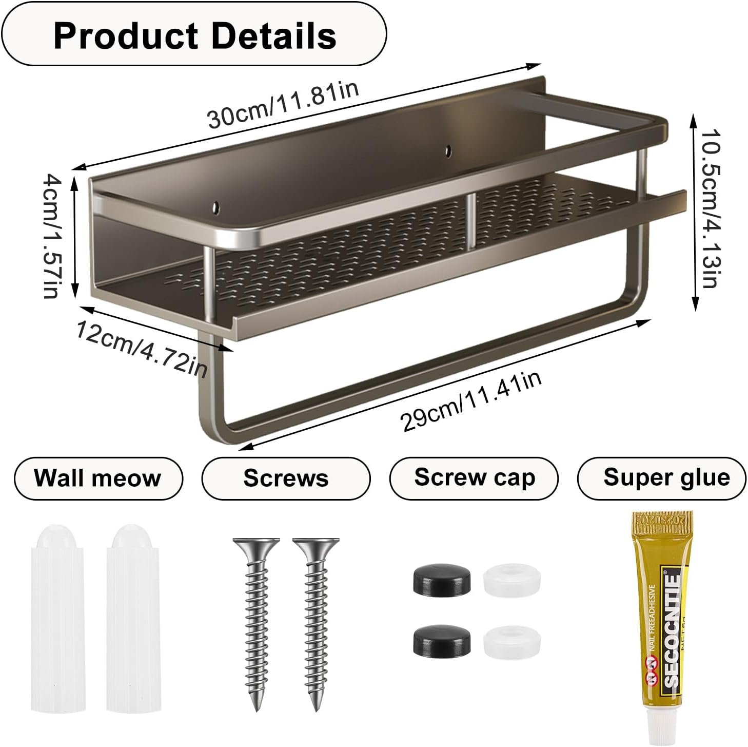 βœ… Well-Designed Shower Shelf with Towel Rack β€” Upgrade your bathroom storage with this all-in-one wall-mounted shower caddy! Features 2 shelves for shampoo & shower gel, plus a removable towel holder installed conveniently beneath the shelf. πŸ›πŸ§΄πŸ§»