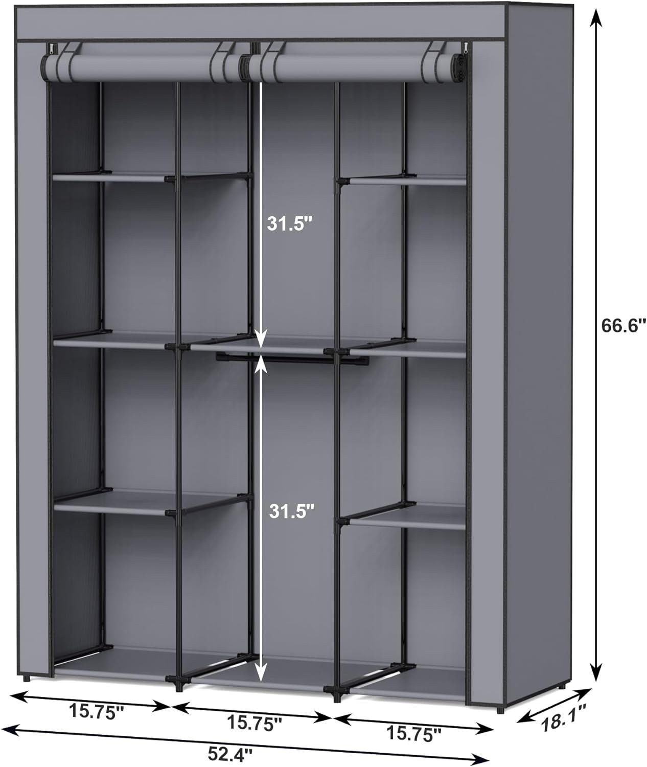 Includes 2 hanging rods for coats, dresses, and jackets, and 8 shelves for storing bags, hats, socks, underwear, and more—maximize every inch of space!